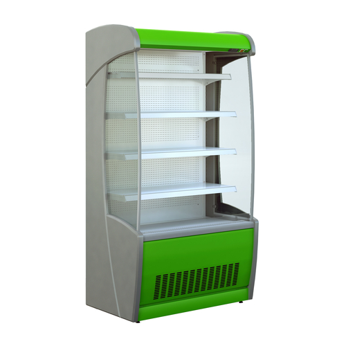 Mafirol Pessoa Tiered Display – General Purpose & Fresh Meat, 705mm W, 620mm D, painted front panel, PVC side panels, optional colour coded panels (POA), double glazed side glasses, (4) adjustable shelves, internal illumination in top canopy, includes night blind