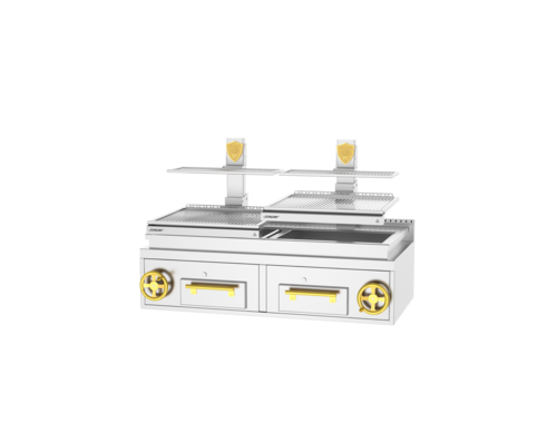 Countertop Basque Grill, double, charcoal daily consumption: 18-20kg, Hydraulic height regulation system for smooth and continuous movement of grill grates, Grilling area of (760 x 500mm) x 2, Fire up time 20 minutes, Grilling temperature of 250ËšC, 3 years parts & labour warranty (excluding cooking grids, coal grids & thermostat)