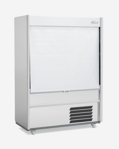 R-Series Multi-Deck Refrigerated Display Case, self-service, open front, 960mm W, 279 litre (10 cu. ft.) capacity, bottom mount self-contained refrigeration, +3/+5°C temperature range, (3) removable shelves with detachable ticket strips, LED strip lighting, thermostat control, night blind, white exterior, castors