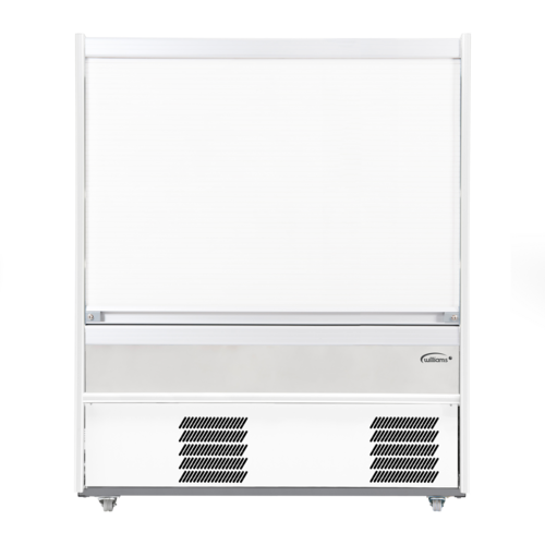 R-Series Multi-Deck Refrigerated Display Case, self-service, open front, 1510mm W, 452 litre (16 cu. ft.) capacity, bottom mount self-contained refrigeration, +3/+5°C temperature range, (3) removable shelves with detachable ticket strips, LED strip lighting, thermostat control, security shutter with lock, stainless steel finish, castors