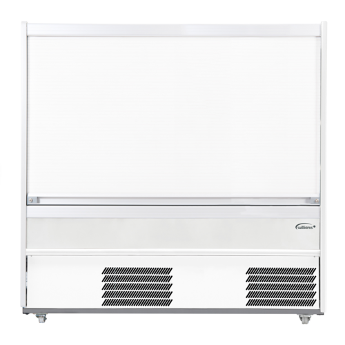 R-Series Multi-Deck Refrigerated Display Case, self-service, open front, 1856mm W, 560 litre (19.7 cu. ft.) capacity, bottom mount self-contained refrigeration, +3/+5°C temperature range, (3) removable shelves with detachable ticket strips, LED strip lighting, thermostat control, security shutter with lock, stainless steel finish, castors (Please Note: This model comes with (2) power supply cords, both power supply cords should be connected to the same double outlet socket)