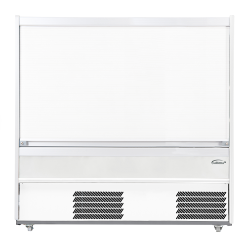 R-Series Multi-Deck Refrigerated Display Case, self-service, open front, 1856mm W, 560 litre (19.7 cu. ft.) capacity, bottom mount self-contained refrigeration, +3/+5°C temperature range, (3) removable shelves with detachable ticket strips, LED strip lighting, thermostat control, security shutter, white exterior, castors (Please Note: This model comes with (2) power supply cords, both power supply cords should be connected to the same double outlet socket)