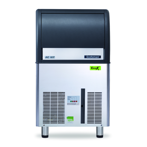 Scotsman AC107 EcoX Self-contained ice maker with storage bin, medium 20g Gourmet Supercube, air cooled, 23 kg storage bin capacity, 53 kg production/24 hours, stainless steel exterior, 230v/50/1-ph, CE