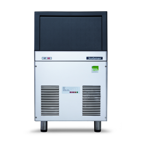 Scotsman AF87 EcoX Flake Ice Maker With Bin, granular shaped flake-ice 25% residual water, air-cooled, 70-kg/24 hours production, 25-kg storage bin capacity, self-contained refrigeration, includes integrated XSafe natural sanitation system, 230v/50/1-ph, CE, WRAS
