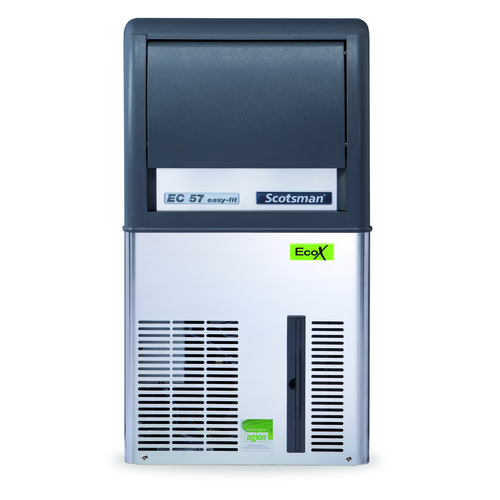 Scotsman EC57 EcoX Self-contained ice maker with storage bin and built-in drain pump , small 8g Gourmet Supercube, air cooled, 12 kg storage bin capacity, 28 kg production/24 hours, includes integrated XSafe natural sanitation system, 230v/50/1-ph