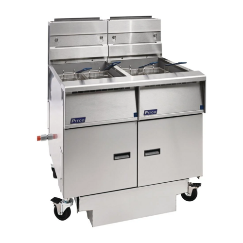Pitco Solstice Fryer, gas, 2 vat, oil capacity 21.5 litres per vat, built in oil filtration, stainless steel tank, front, door, side & flue, supplied with 2 fry baskets per vat., BTU 122,000 per hour per tank
