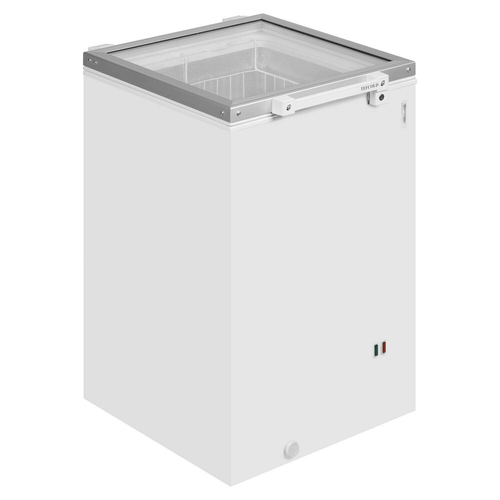 Tefcold® Chest Freezer, 550mm W, 115 litre/4.1 cu. ft. capacity, (1) basket, -14° to -24°C adjustable temperature range, defrost drain, flat hinged glass lid, lock fitted, white interior & exterior, fully automatic operation, manual defrost with drain, fitted castors (except on ST160 packed inside), R600a, MEPS D