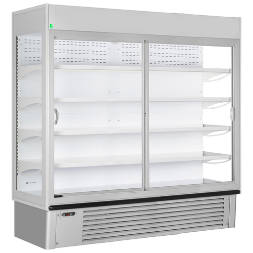 Framec Multi-Deck Merchandiser, refrigerated, 1885mm W x 737mm D x 1987mm H, 1180-litre/41.7 cu.ft. interior capacity, self-service, digital controller & temperature display, +1° to +10°C temperature range, self-closing doors with locks, (4) adjustable shelves, LED interior light, ticket strips, fan assisted cooling, automatic defrost, white interior, grey exterior, R290a, 1070 watts