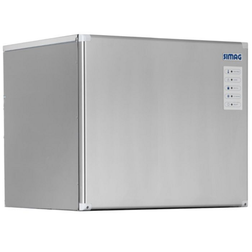 Simag SVD Modular Ice Cuber, High efficiency vertical evaporator cuber, Air cooled; water cooled available (P.O.A), AISI 304 stainless steel finishing, Low power and water consumption, Self diagnostic system with LED indicators, Front evaporator access, Easy removable condenser filter, Double stacking available