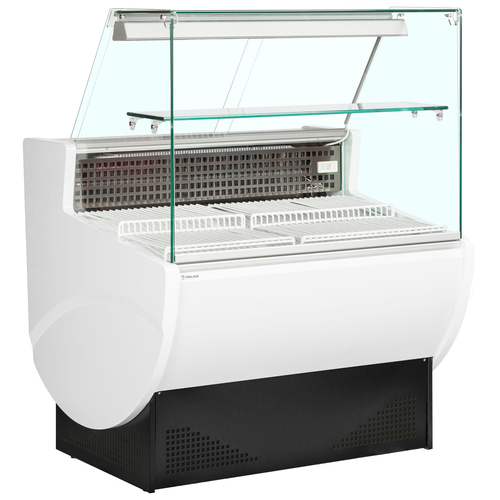 Trimco Slimline Serve-Over Counter Display Case, flat front glass, 980mm W, rear mounted self-contained refrigeration, +2°C to +8°C temperature range, (1) ambient shelf, rear sliding acrylic doors, digital controller & temperature display, interior light with switch, static cooling, off cycle defrost, refrigerated understorage with hinged door, includes 13 amp socket on rear, stainless steel interior, white exterior, R290, 250 watts (Web Deal Price is available until the 31st January 2026 whilst stocks last, when you place your order directly through the TEFCOLD website only)