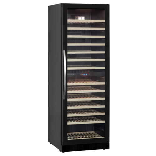 Wine Cooler, Frameless glass door, 2 temperature zones with a max. of 10°C variation, Energy efficient cooling system, Low noise level, LED interior light with switch, Reversible door, Curved stainless steel handle, Wooden shelves, High/low temperature alarm, Presentation shelves available as option, black exterior finish,Interior Finish: Black ABS, Net Weight: 106kg”, automatic defrost type, R600a refrigerant, Climate Class: 4Energy Rating: G,Energy Consumption: 175kWh per Annum, 13 amps